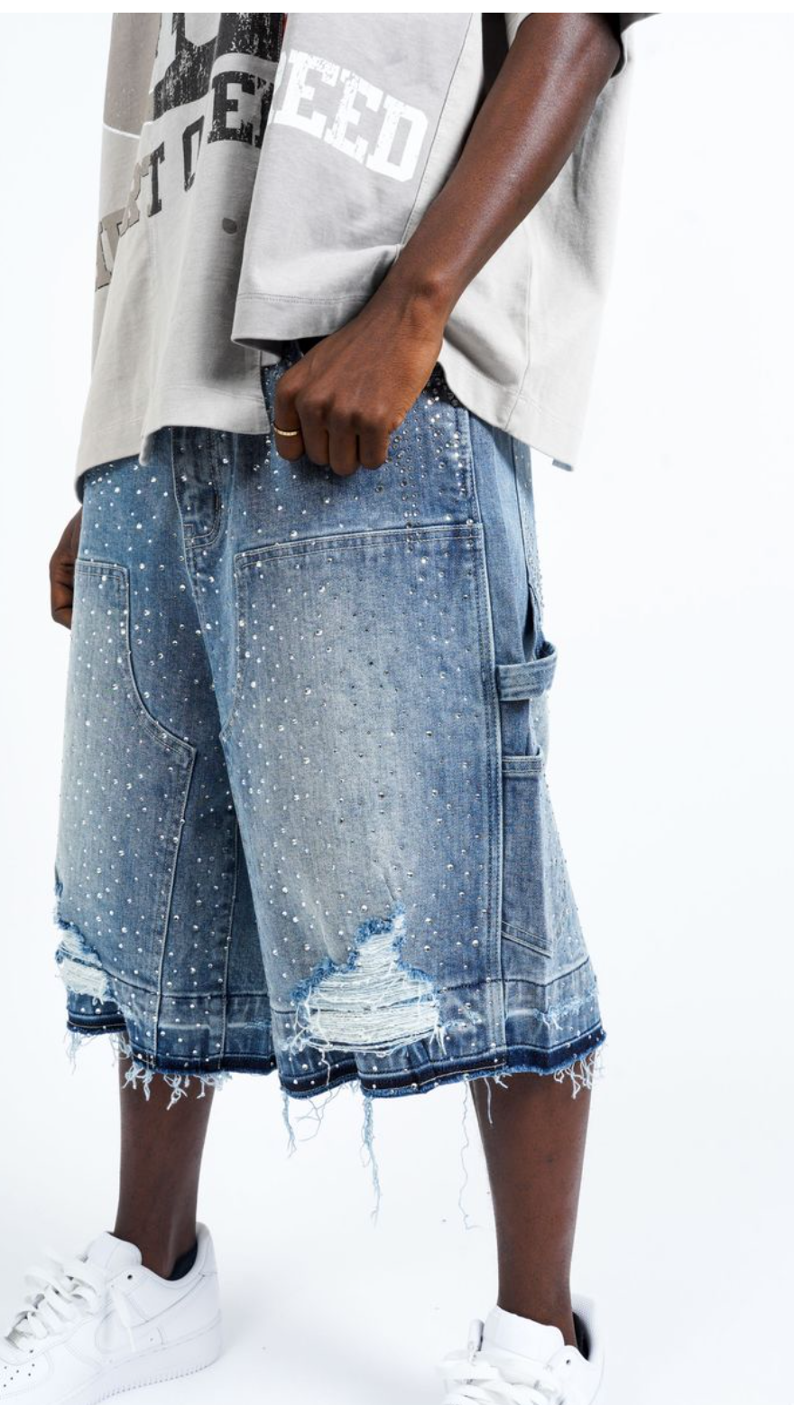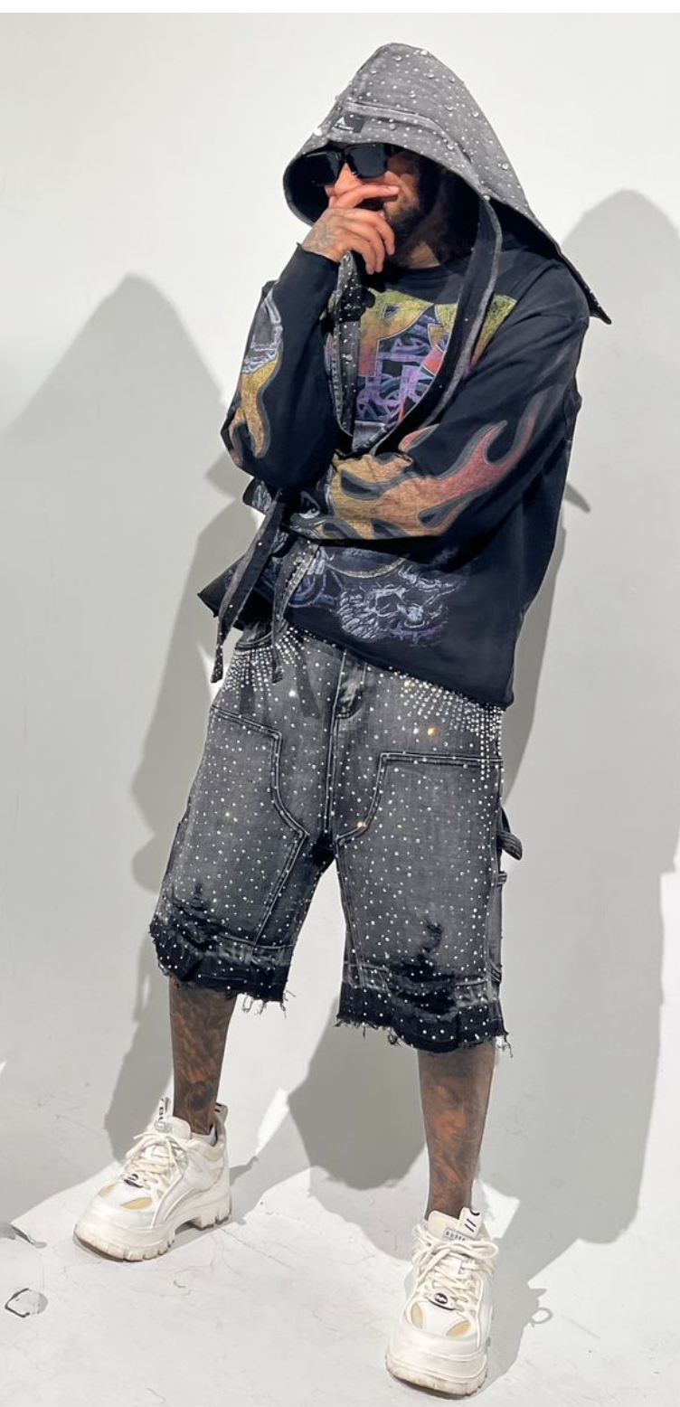 Crystilized Denim Shorts
